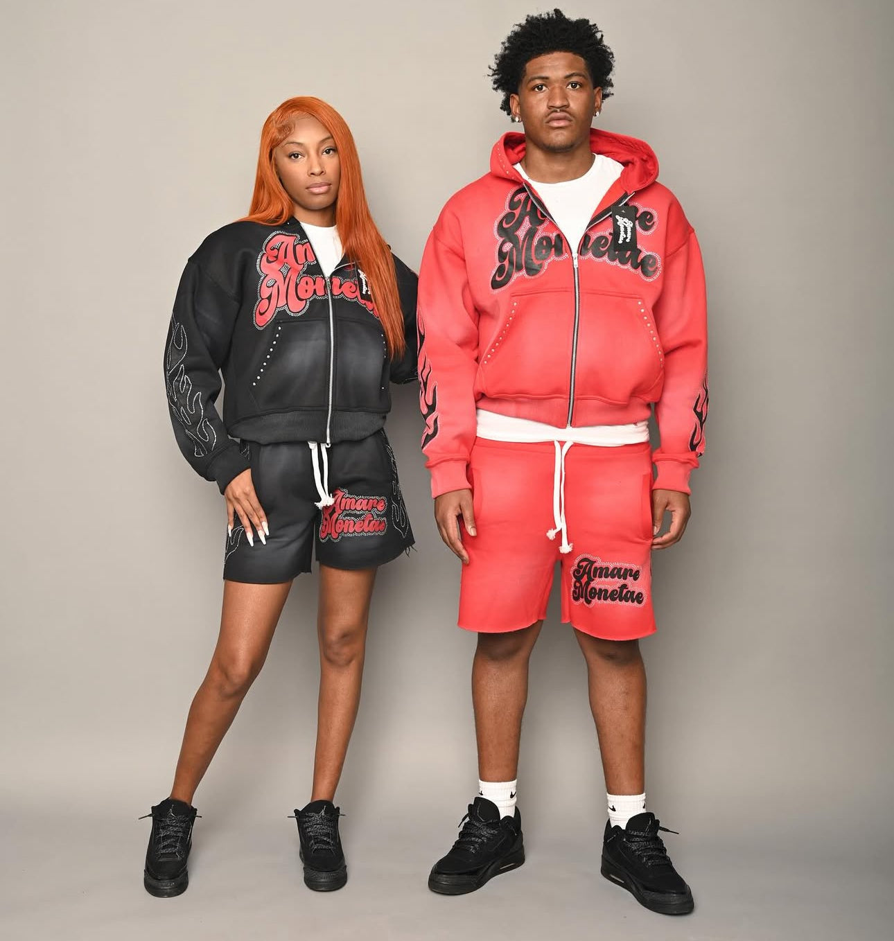 Amare Monetae Rhinestone Hoodie & Shorts Set